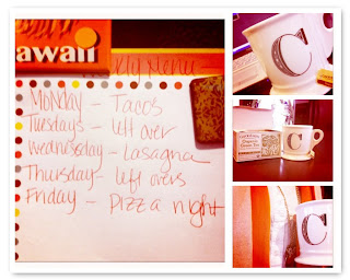 about a month ago my hubby was gone for a work trip and the kids and i decided to make a list of dinners for the week. we were really missing out on family meals and i was not cooking and feeling like a really bad mom. so making a list and posting it on the fridge has really helped keep me organized and i dont have to worry about whats for dinner each night. on the two nights that i work late we planned for left overs. how do you plan dinners each night??